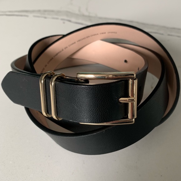 H&M Accessories H M Faux Leather Black Belt Gold Buckle Large